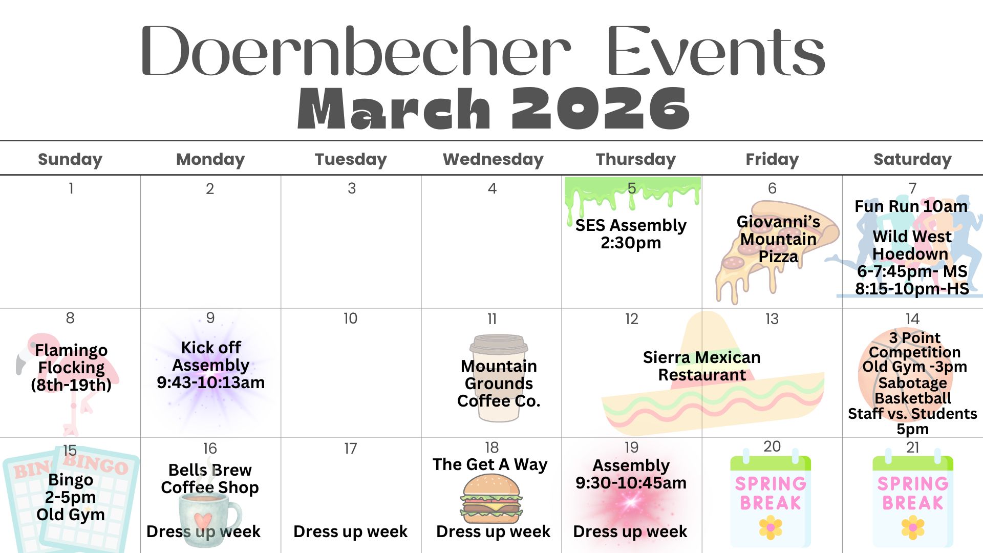 Starting tomorrow, SJSHS is starting their Doernbecher Fundraising Events!! Here's the calendar of events for all the fundraiser activities.